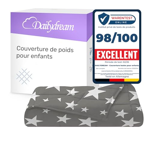 Dailydream Couverture Lestée Enfant | thérapeutique | 104x150 cm | 3,2 kg | Motif étoiles | 100% Coton | avec Perles de Verre | Couette pondérée | apaisante et relaxante | Poids corporel 35-55 kg