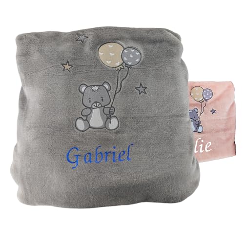 KDO MAGIC Couverture bébé personnalisée - Plaid personnalisé bébé - Prénom brodé - 125 x 150 cm - Rose et Gris - Cadeau garçon, Fille Personnalisable - Plaid Polaire Phosphorescent (Gris)