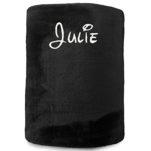 KDO MAGIC Plaid personnalisé avec prénom - Couverture Polaire Personnalisable brodé - 125 x 150cm - Cadeau pour Homme et Femme (Noir)