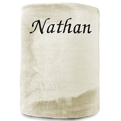 KDO MAGIC Plaid personnalisé avec prénom - Couverture Polaire Personnalisable brodé - 125 x 150cm - Cadeau pour Homme et Femme (Beige)