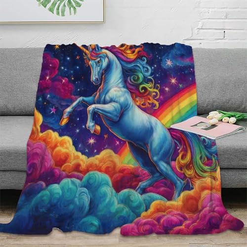 CTJQHVKZ 3D Imprimé Unicorn Fantastique Plaid de Voyage Microfibre Compact Rainbow Magic Couverture Anti-Bouloche pour Étudiants Campeurs Voyageurs 80×90inch(200x230cm)