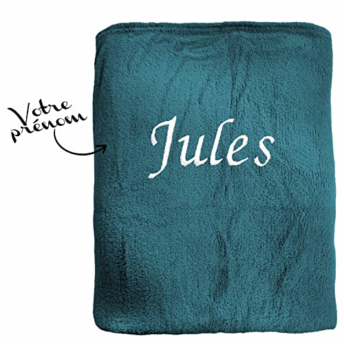 KDO MAGIC Plaid personnalisé avec prénom - Couverture Polaire Personnalisable brodé - 125 x 150cm - Cadeau pour Homme et Femme (Bleu Vert Pâle)
