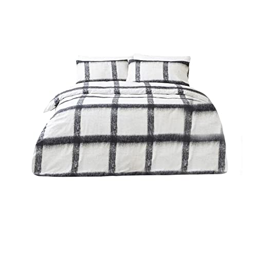 The Linen Yard Ensemble de Couverture de Couette Mohair Check Duvet, Coton, Natural/Black, 137 x 200 cm