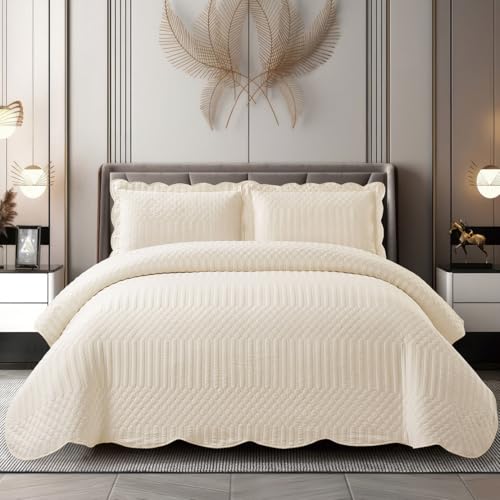 XIUWOUG Couvre Lit 2 Personnes 220X240cm, Couverture Patchwork, Boutis Couvre-Lit Matelassé en Microfibre, Dessus De Lits Et Couvre-Lits De Luxe avec 2 Taies d'oreiller,Beige,240x250