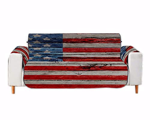 A.Monamour Housses de Canapé Salon Couverture Imprimée Drapeau Américain Imprimé Peint sur Planches De Bois Velours Chaise Fauteuil Meubles Protecteur Housses de Canapé 1 Place 2 Places 3 Places