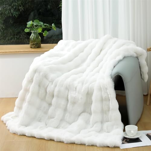 GEBIN Couverture Douce et Épaissie en Peluche de Lapin – Plaid en Fausse Fourrure de Haute Qualité, Idéal pour Le Confort à la Maison, sur Le Canapé ou en Voyage (White,200x230cm)