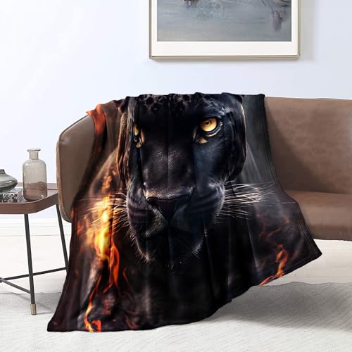 CHTLIFQ Couverture Polaire Motif 3D Couverture en Flanelle panthère Noire sur feu Art canapé Couverture de canapé Toutes Saisons literie pour Enfant 59x78,7 Pouces Flanelle (150x200cm)