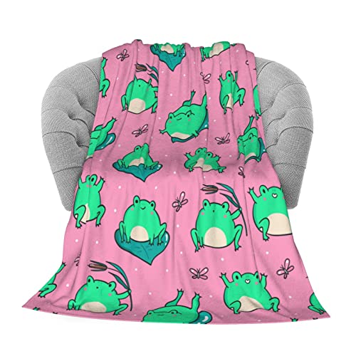 Joyidec Couverture polaire en flanelle, motif grenouilles vertes sur rose, pour canapé, bureau, voyage, chambre d'enfants et d'adultes, toutes saisons, 127 x 101,6 cm