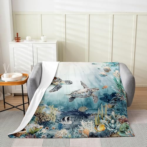 Couverture en Polaire Douce et Confortable pour Femmes, Filles, Anniversaires, Noël, Saint-Valentin, décoration sur Le thème des Tortues de mer, Chambre à Coucher, Salon, canapé, lit, Sofa, pour