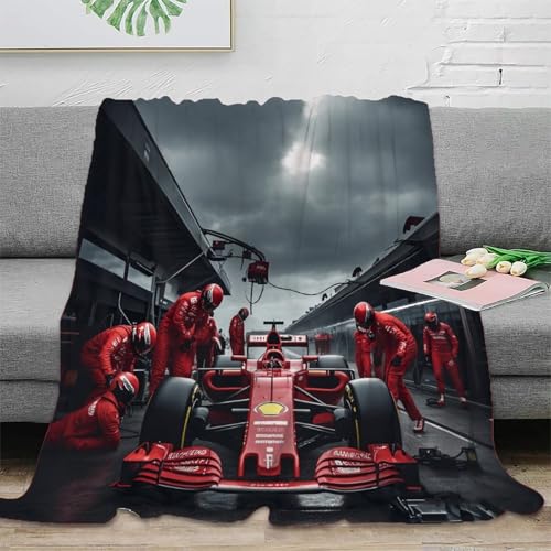 Ferrarii Couverture En Flanelle 40x50inch(100x130cm) Extra Doux, Quatre Saisons, Couvre-lit Multi-usages Canapé, Plaid Pour Lit, Couverture Foulard Sur Le Thème Du FormulaOne Perform A Pit Stop