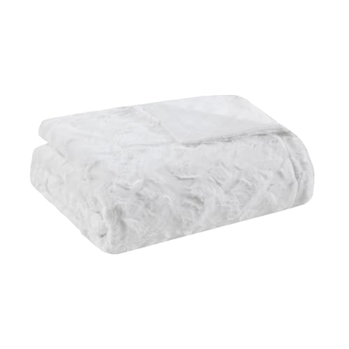 Madison Park Zuri Jeté de Luxe surdimensionné en Fausse Fourrure à Rayures animales, Imitation Vison sur l'envers, Couverture Moderne pour Temps Froid pour lit, canapé, 152,4 x 178,8 cm, Blanc