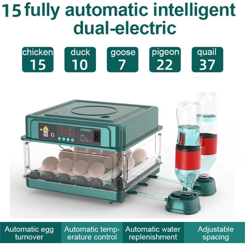 Couveuse Oeuf Automatique 36 Oeufs retournement chronométré standardisation de la température remplissage automatique vert