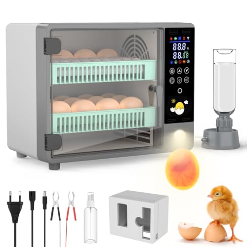 Couveuse Oeuf Automatique, Incubateur Oeuf Automatique 24 Oeufs, Retournement Automatique des Oeufs et Humidification par Atomisation Ultrasonique, avec Écran LED Couleur et Mire Oeuf Integré