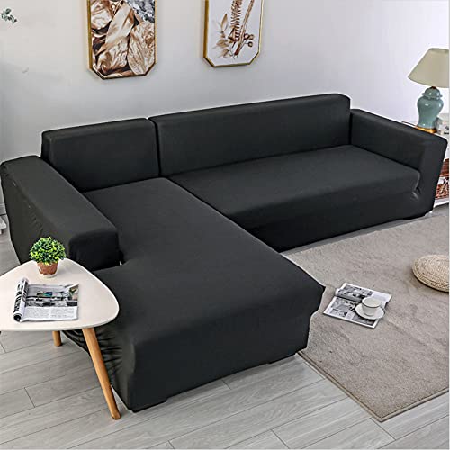 OKJK 1/2 Pièces Housse de canapé d'angle pour Salon Housse canape Extensible pour Protecteur canapé en Cuir,Couvre canape d Angle Quatre Saisons Universel (Black,3 Seater + 3 Seater)