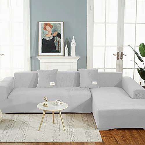 OKJK 1/2 Pièces Housse de canapé d'angle pour Salon Housse canape Extensible pour Protecteur canapé en Cuir,Couvre canape d Angle Quatre Saisons Universel (Gray,2 Seater + 2 Seater)