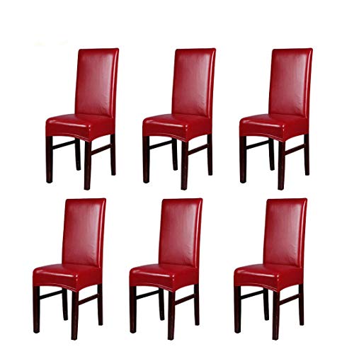 KELUINA Couvre-chaises en Cuir D'unité Centrale en Spandex Protctor Housse De Chaise De Salle à Manger Extensible Imperméable Et Résistant Aux Huiles (Vin Rouge,6 pcs)
