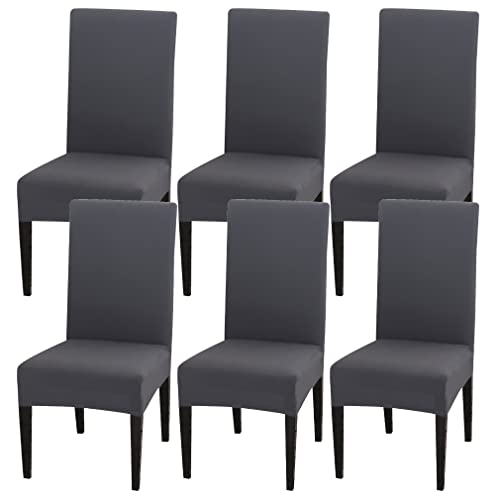 NFYUEBUC Housse de chaise avec dossier 6 pièces, élastique universelle anti-taches moderne, lavable, décorative, couvre-chaises pour salon, maison, restaurant, hôtel (gris)
