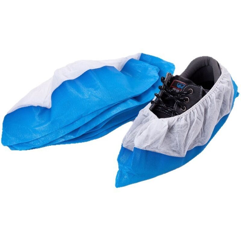 CPE+PP Surchaussures jetables, PP sur chausson jetable avec semelle de CPE bleue, 50x couvre chaussure, protege chaussures jetables taille unique,