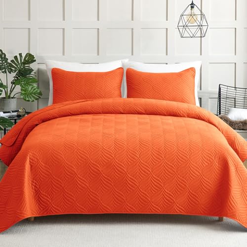 Couvre-lit 240x260 cm patchwork bohème coton + 2 taies courtepointe mixte orange grande taille Label
