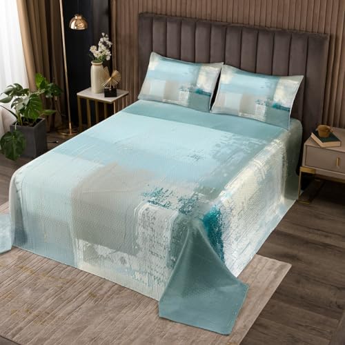 Homewish Couvre-Lit 260x240 Bleu Clair Rétro Grunge, Dessus de Lit Fierté Arc-en-Ciel, Couverture de Lit Aquarelle Contemporaine, Jetés de Lit Abstrait Ombre Gris Dégradé