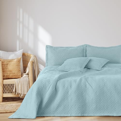 WONGS BEDDING Parure de lit bohème 3 pièces pour très Grand lit, Bleu Clair, Couvre-lit d'été léger pour Toutes Les Saisons (264,2 x 228,6 cm)