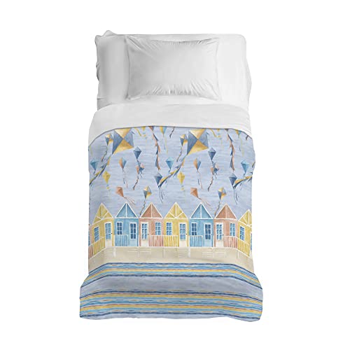 PENSIERI DELICATI Couvre-lit 220 x 280 cm, 100% Coton Pique, idéal comme Drap d'ameublement, Couverture de lit 1 Place et demie, Motif Cerfs-Volants Bleu Clair, 100% fabriqué en Italie