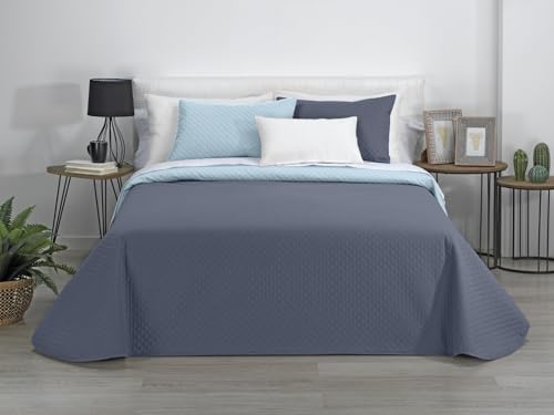Estoralis - AVA | Couvre lit matelassé Doux et léger | Tissu matelassé réversible | Bleu Clair/Pierre | pour lit de 140/150/160 cm. (250 x 270 cm. (Largeur par Hauteur) pour Toutes Les Saisons
