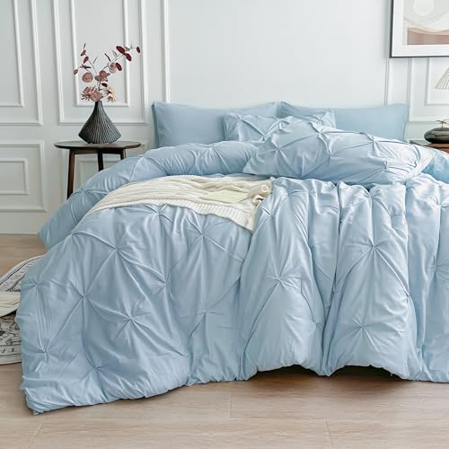 Maple&Stone Parure de lit 8 pièces à plis pincés dans un sac, parure de lit plissée avec draps, taies d'oreiller et couvre-oreillers, bleu clair pour grand lit