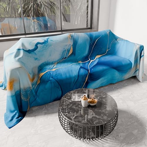 PETTI Artigiani Italiani - Drap de Protection en Microfibre Multi-Usage Anti-Taches 180x270 cm, Housse de Canapé, Couvre Lit, Couverture de Canape, Marble 11 Bleu Clair, 100% Made in Italy