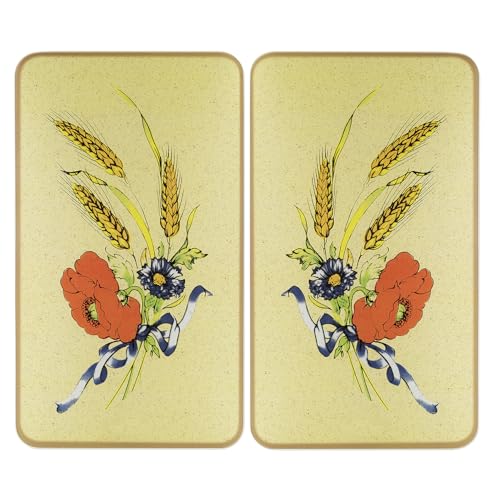 WENKO Protection Plaque de Cuisson, Couvre Plaque de Cuisson en Verre Bleuets, Lot de 2, Verre trempé, 30x52 cm, Multicolore