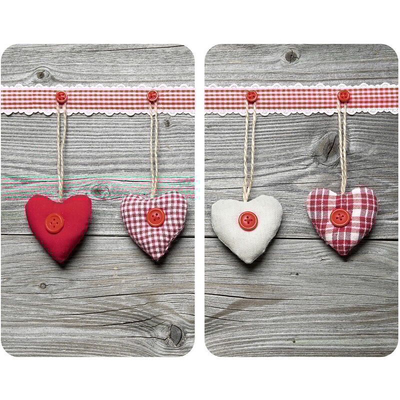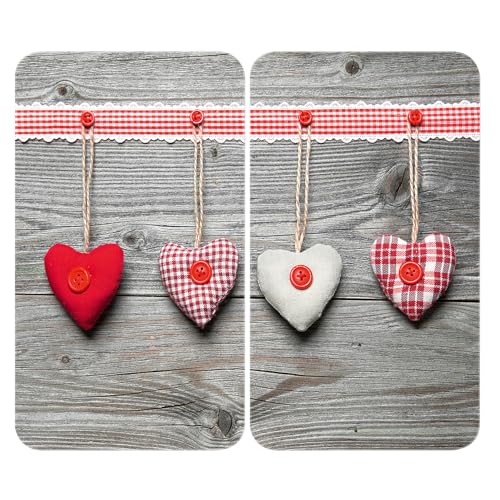 WENKO Protection plaque de cuisson "Coeurs" en verre trempé | Pour toute plaque | Couvre plaque de cuisson, planche à découper, extension plan de travail | Lot de 2 | 52x30cm | Multicolore