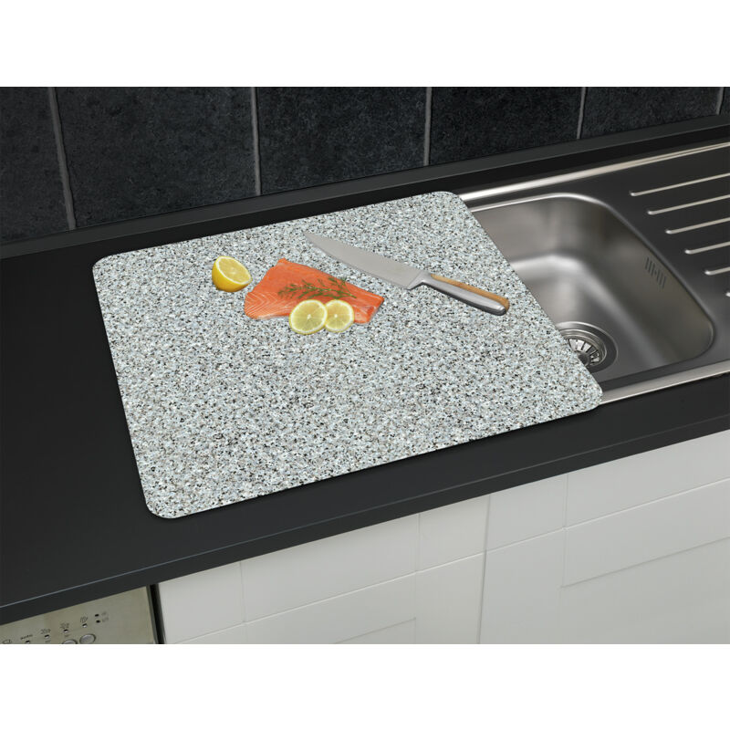 Protection plaques cuisson en verre trempé 'Granit' Wenko Lot de 2, 3en1, couvre plaque, planche à découper, extension plan de travail , 30 x 52 cm,