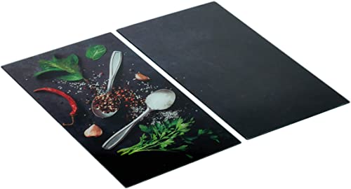 Allstar Protection plaque de cuisson en verre "Romarin", couvre plaque, pour toutes les plaques, planche à découper et extension plan de travail, lot de 2, verre trempé, 30x52 cm, multicolore