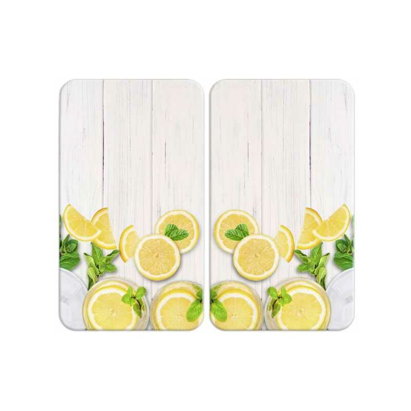 WENKO Protection Plaque de Cuisson Citrons en Verre trempé | pour Toute Plaque | Couvre Plaque de Cuisson, Planche à découper, Extension Plan de Travail | Lot de 2 | 52x30cm | Multicolore