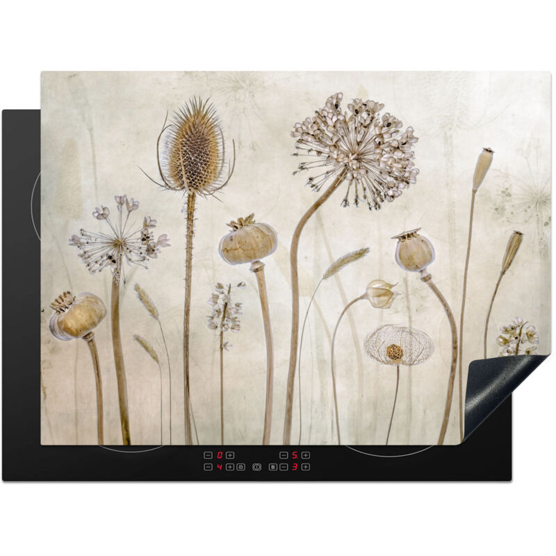 PROTECTION PLAQUE INDUCTION Fleurs - Aquarelle - Nature morte - Marron - Vintage Couvre Plaque De Cuisson 71x52 cm