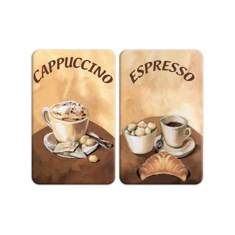 Protection plaque de cuisson Wenko couvre plaque de cuisson en verre 'Café', Lot de 2, verre trempé, 30x52 cm, Pour toutes plaques, Multicolore