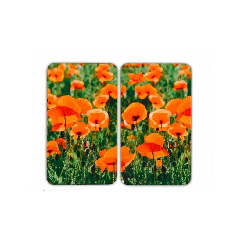 Protection plaque de cuisson 'Champs Coquelicots' verre trempé Wenko Pour toute plaques, Couvre plaque de cuisson, planche à découper, Lot de 2,