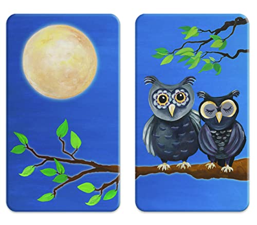 WENKO Protection Plaque de Cuisson Chouette en Verre trempé | pour Toute Plaque | Couvre Plaque de Cuisson, Planche à découper, Extension Plan de Travail | Lot de 2 | 52x30cm | Multicolore
