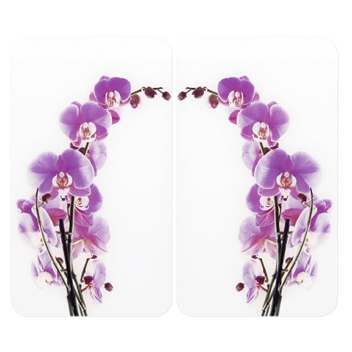 WENKO Protection plaque de cuisson "Fleur d'orchidée" en verre trempé | Pour toute plaque | Couvre plaque de cuisson, planche à découper, extension plan de travail | Lot de 2 | 52x30cm | Multicolore