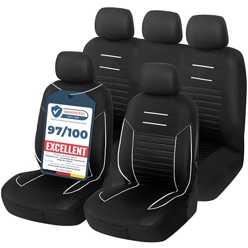 upgrade4cars Housse de Siege Voiture Universelle Noir Blanc | Ensemble de Housses Siège Auto Universel | Couvre Sieges pour Avant et Arrière