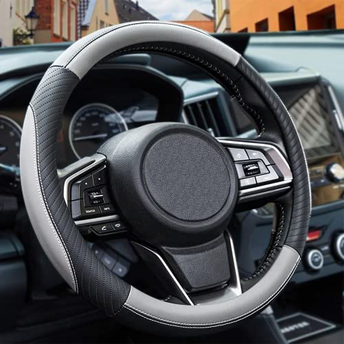 Upgrade4cars Couvre Volant Voiture Gris Simili-Cuir | Taille Universel 37-39 cm | Accessoires Auto Decoration Interieur