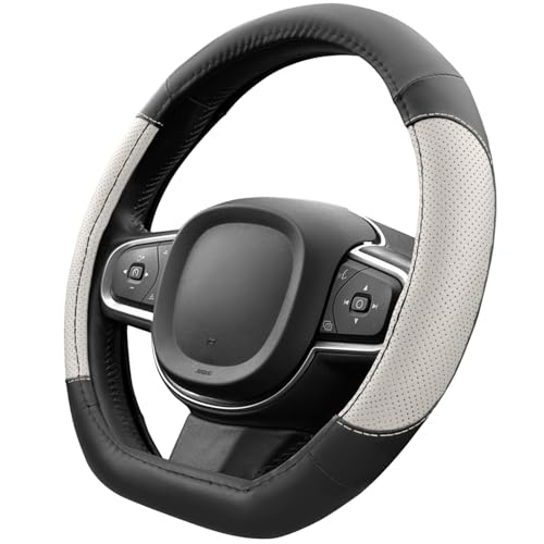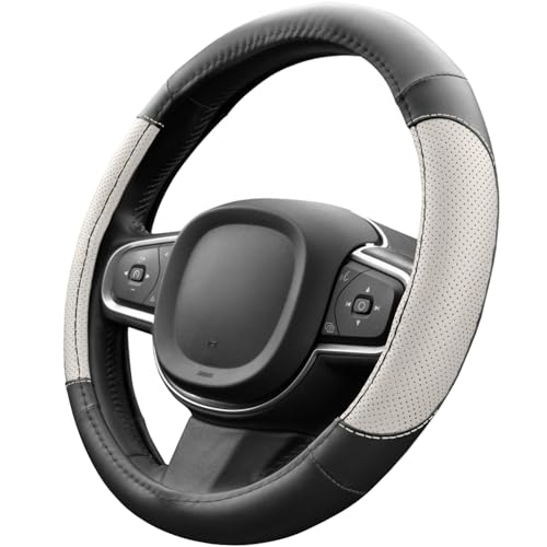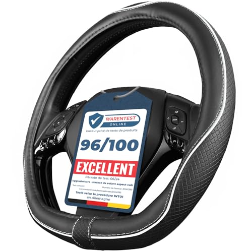 Upgrade4cars Couvre Volant Voiture Noir Blanc Simili Cuir | Housse de Protection Taille Universel 37-38 cm | Accessoires Auto Decoration Interieur Protege