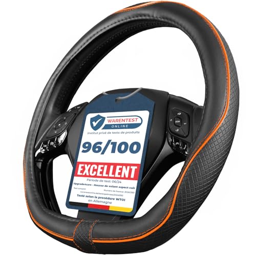 Upgrade4cars Couvre Volant Voiture Forme D Noir Orange Simili Cuir | Housse de Protection Taille Universel 37-38 cm | Accessoires Auto Decoration Interieur Protege