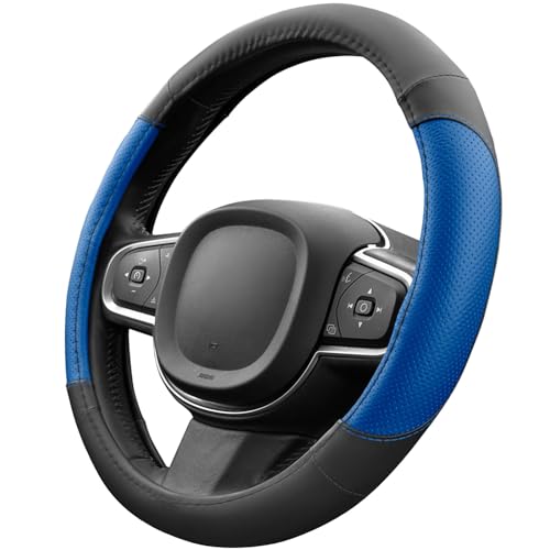 Upgrade4cars Couvre Volant Voiture Noir BleuSimili Cuir | Housse de Protection Taille Universel 37-38 cm | Accessoires Auto Decoration Interieur Protege