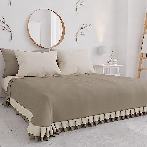 PETTI Artigiani Italiani - Couvre-lit Double d'été en Coton, Couvre-lit à Double Volant, Couverture légère Double, Couvre-lit avec Volant, Taupe, 100% fabriqué en Italie
