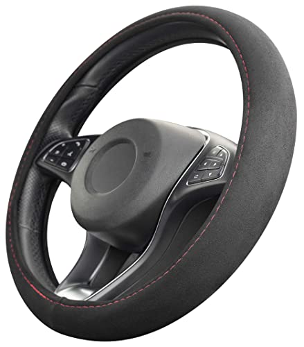 Upgrade4cars Couvre Volant Voiture Rouge Alcantara Look | Accessoires Auto Interieur | Taille Universel 37-39 cm | Cadeaux pour Femmes et Hommes | Decoration pour l'été et l'hiver