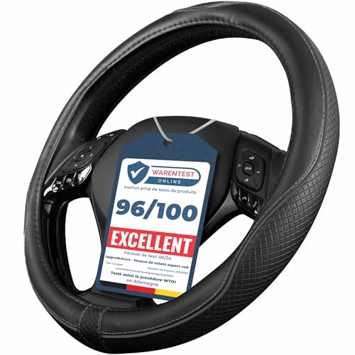 Upgrade4cars Couvre Volant Voiture Noir Simili Cuir | Housse de Protection Taille Universel 37-38 cm | Accessoires Auto Decoration Interieur Protege