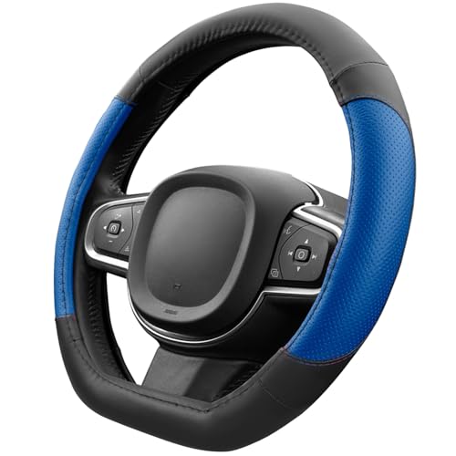 Upgrade4cars Couvre Volant Voiture Forme D Noir Bleu Simili Cuir | Housse de Protection Taille Universel 37-38 cm | Accessoires Auto Decoration Interieur Protege