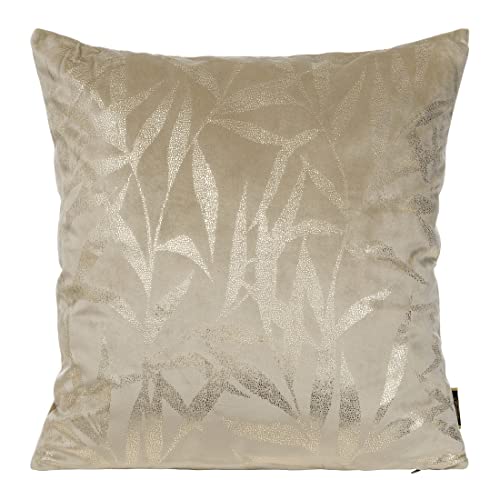 Eurofirany Elegant Velvet Cushion Covers Decorative Cushion with Print 45 x 45 cm Cover Velvet Cushion Cover Soft Sofa Cushion Leaves Pattern 1 Beige