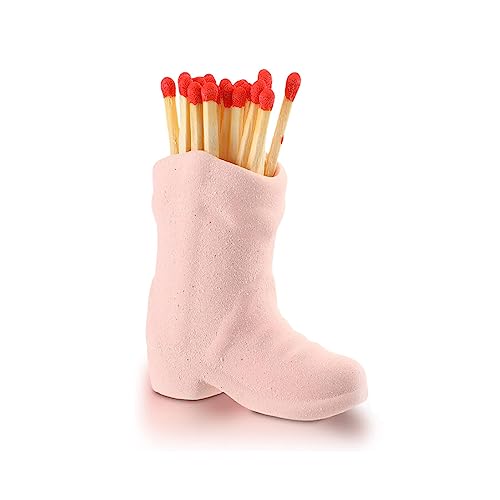 mumisuto Céramique Porte Allumette, Porte Allumette de Botte de Cowboy, Cowboy Boot Match Holder avec Striker, Intérieur Décoration Accessoire pour Maison Cuisine(Rose)